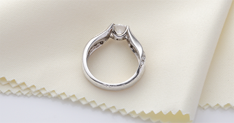 汚れが目立つようになったら、使い古しの歯ブラシに中性洗剤を付けて軽くこすって汚れを取り、よく水洗いをして、柔らかい布で水分を充分に取り除いて下さい。特にリングの裏側や肌に触れる箇所には汚れがたまりやすいのでしっかり落としましょう。(※真珠や水に弱い宝石がついている場合は避けて下さい。)それでも落ちない汚れの場合は磨き直しが必要です。